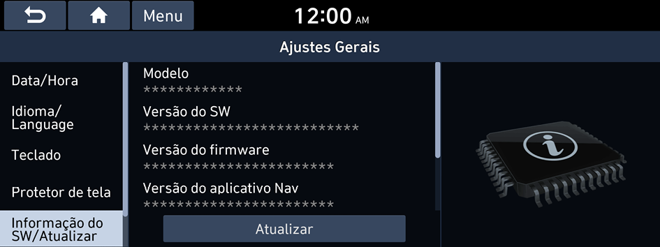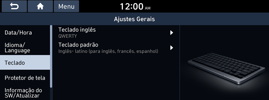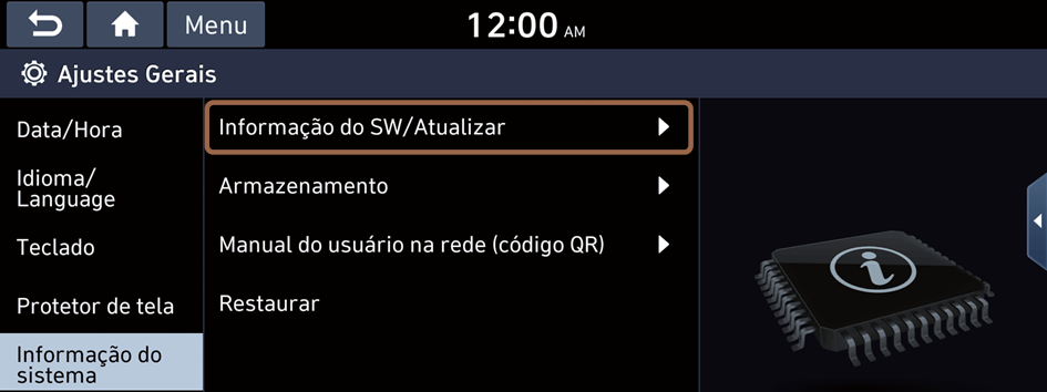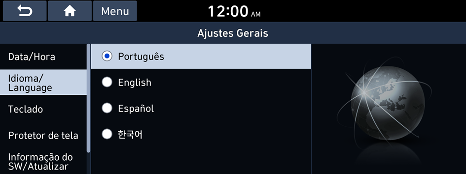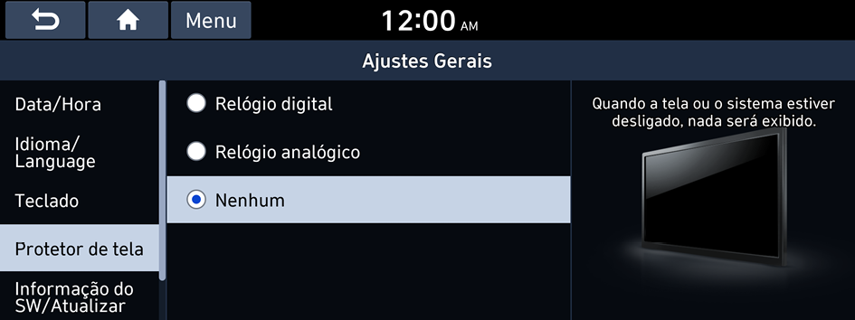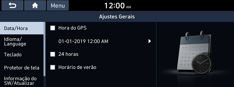Você pode configurar os ajustes gerais de data, hora, idioma/language e afins. Você também pode verificar as informações do sistema.
