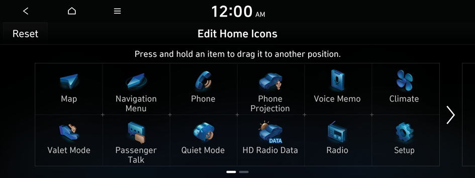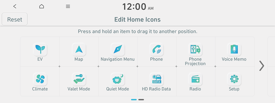 To initialize the positions of icons, press Reset.