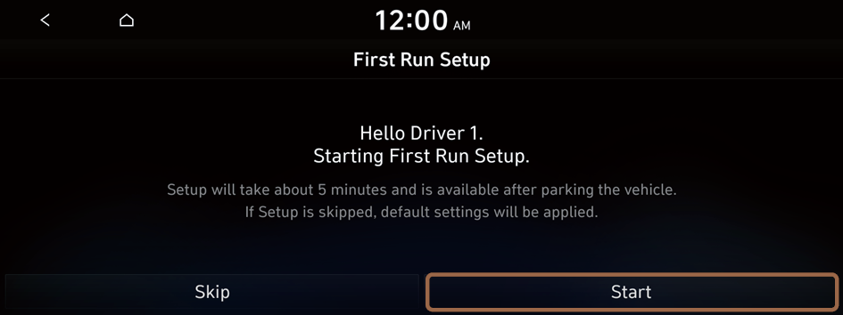 - To proceed with First Run Setup without changing the driver's name, press Next.