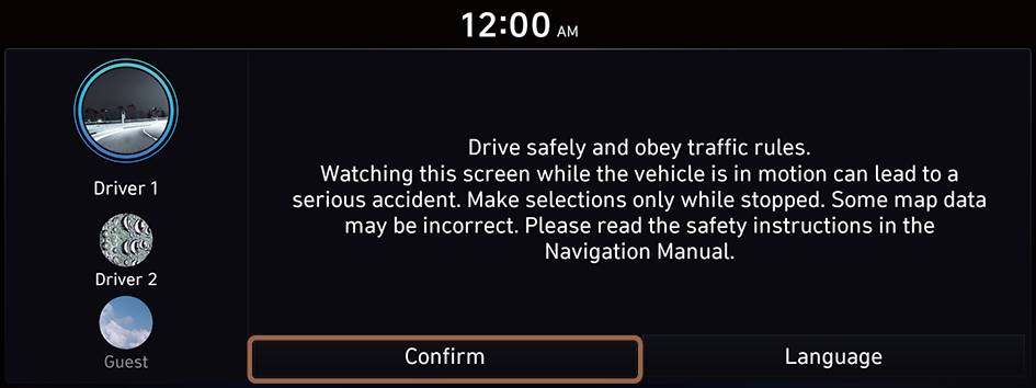 - When a safety warning message appears, read it, select the driver image, and then press Confirm.
