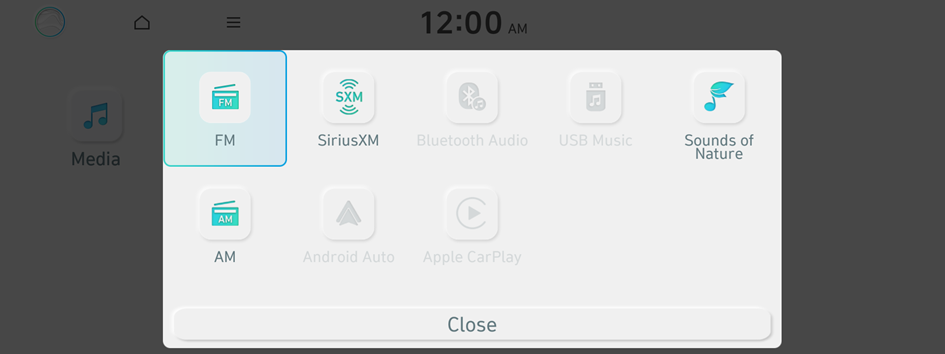 • When multiple media are connected, press the [RADIO] or [MEDIA] button once more and then press the desired media source from the Radio/Media selection window (if equipped).