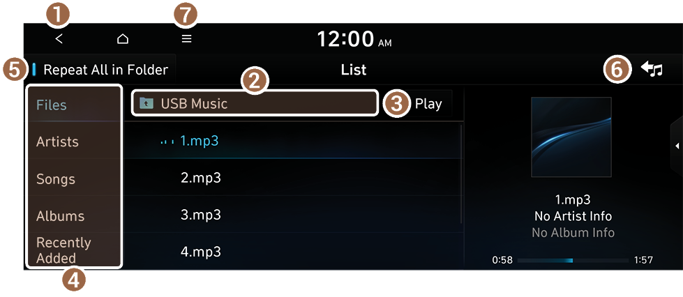 USB music list screen