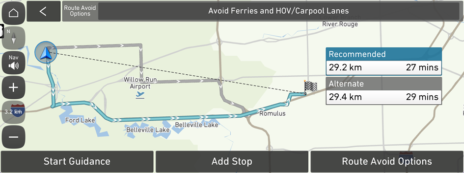 You can use fast and accurate route guidance based on real-time and forecast traffic data collected by the Bluelink Center.