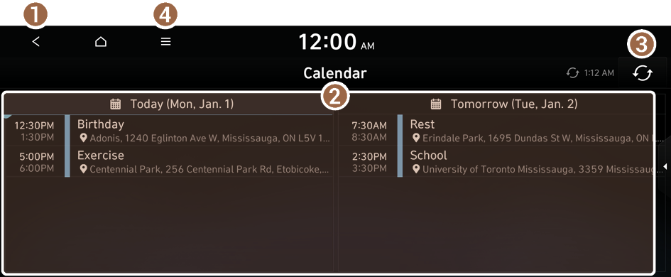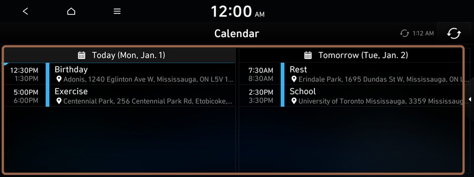 On the All Menus screen, press Bluelink ▶ Calendar.