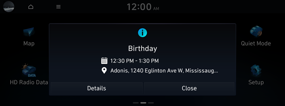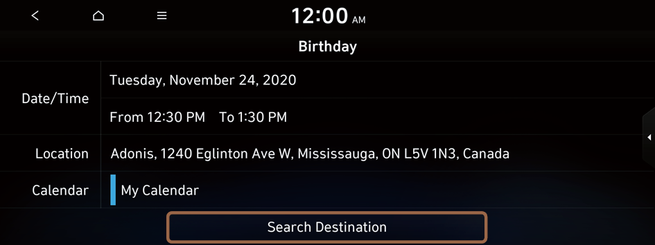 You can view schedule details and set a destination by pressing on an event from the calendar screen.