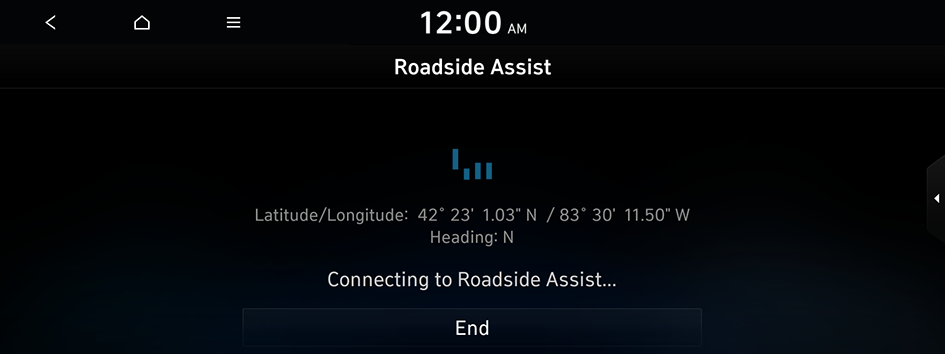 You can diagnose your vehicle. The information is sent to the Bluelink Center. You can receive the diagnosed result from the representative and use additional services, such as towing, route guidance to a repair shop, or a maintenance reservation.