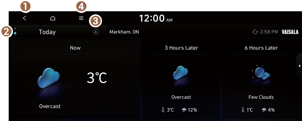 You can view weather information (e.g., temperature, humidity, precipitation and rainfall probability) for today, or the weather forecast.