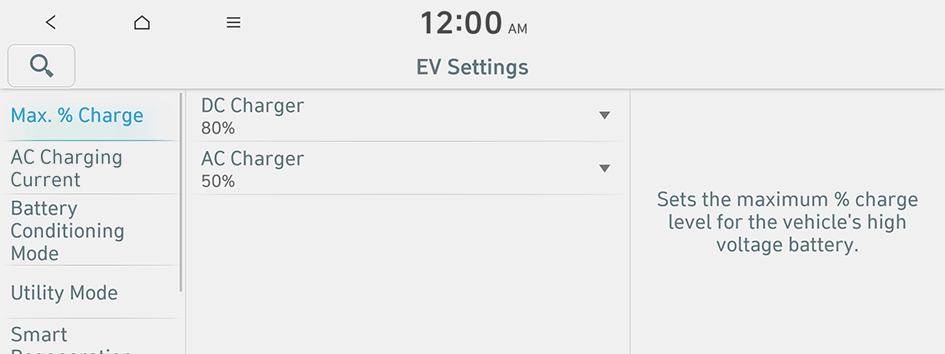 and enter a keyword to search for a setting item. You can also search for a setting item by voice.You can set the battery amount to charge.