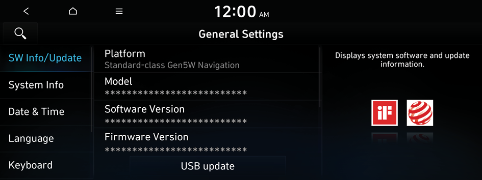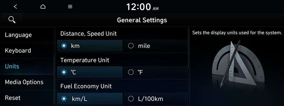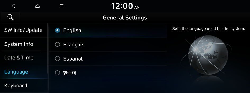 You can configure general settings for date, time, language, and the like. You can also check information of the system.