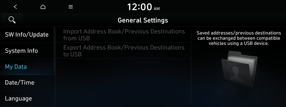 You can import registered location and destination information, saved on your USB storage device, to the system.