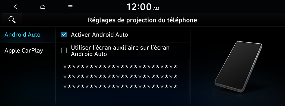 Lorsque vous connectez un téléphone intelligent Android ou un iPhone au véhicule avec un câble USB, vous pouvez lancer et contrôler des applications du téléphone sur le grand écran grâce à son interface conviviale.