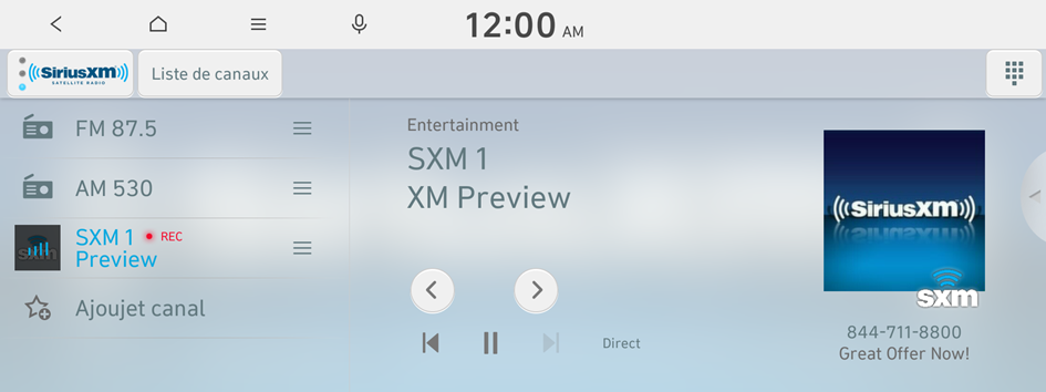 Vous pouvez écouter vos radios favorites sur la radio SiriusXM. Plusieurs ensembles de radios peuvent être diffusés et modifiés par SiriusXM.