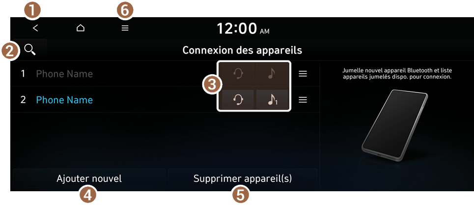 Si vous n'utilisez plus un appareil Bluetooth ou si vous souhaitez ajouter un nouvel appareil alors que 6 appareils sont déjà enregistrés, supprimez un appareil enregistré.