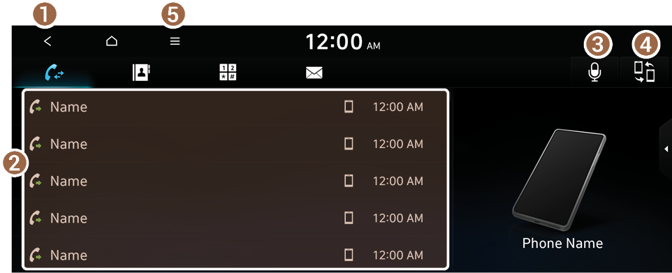 Lorsque vous connectez votre appareil mobile au système en Bluetooth, la liste des appels récents de l'appareil est téléchargée sur le système et vous pouvez rappeler ces numéros en les sélectionnant sur l'écran du système. Votre véhicule intègre un microphone et un haut-parleur qui vous permettent d'utiliser un téléphone cellulaire facilement et en toute sécurité.