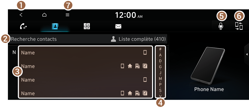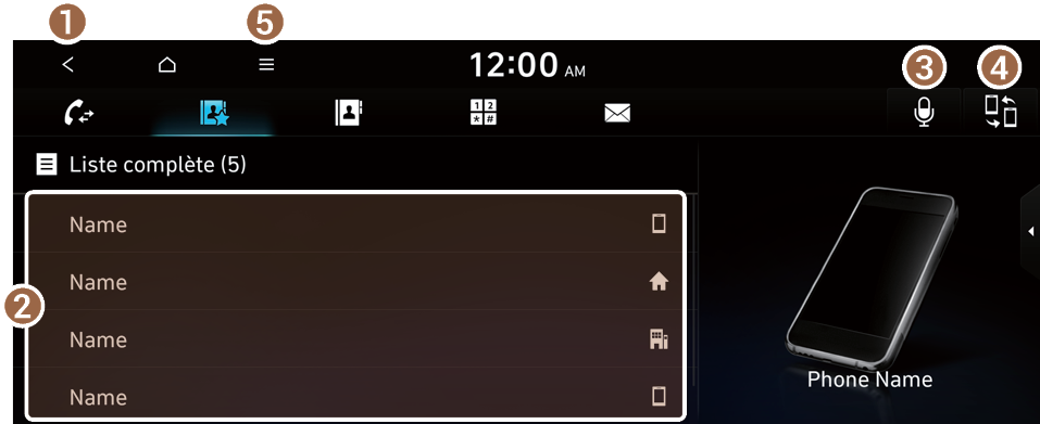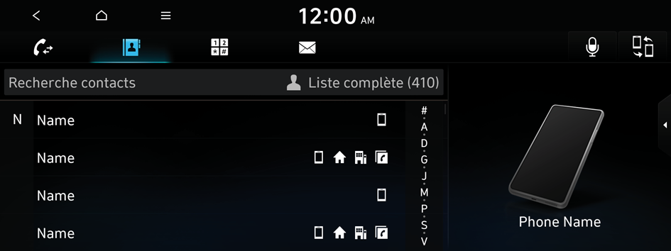 Vous pouvez utiliser les contacts de l'appareil mobile connecté au système.