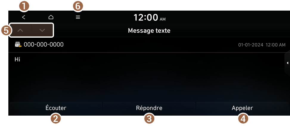 - Lit le message (le son est émis dans les haut-parleurs du véhicule).