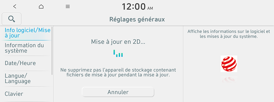 apparaît en haut à droite de l'écran. Pour voir la progression du téléchargement, accédez à l'écran All Menus et appuyez sur Configuration ▶ Général ▶ Info logiciel/Mise à jour.