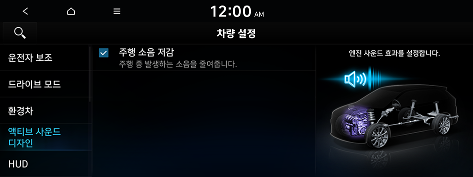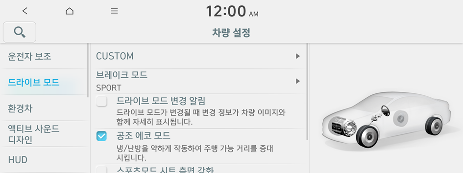 스포츠 모드 또는 고속도로 주행 보조 기능 설정 시 작동하도록 설정할 수 있습니다.