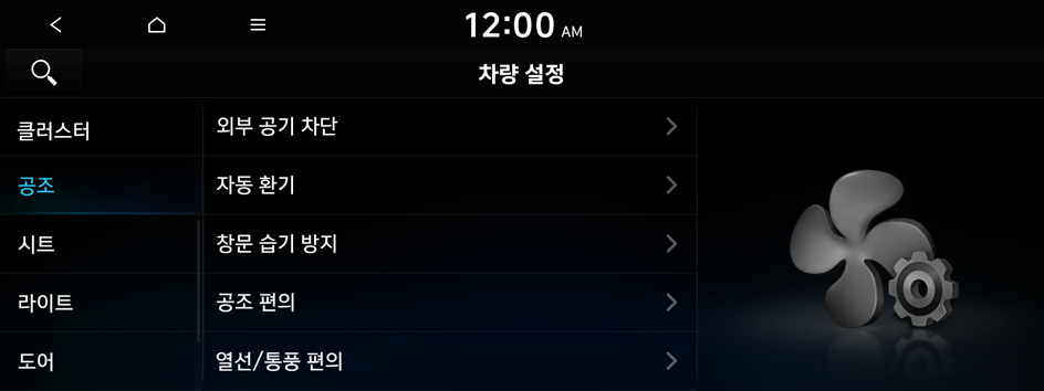 공조 제어와 관련된 사용 환경을 설정할 수 있습니다.