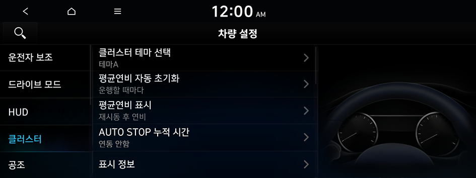 계기판에 표시할 정보를 설정할 수 있습니다.