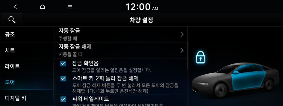 문과 트렁크(테일게이트)에 관한 사용 환경을 설정할 수 있습니다.