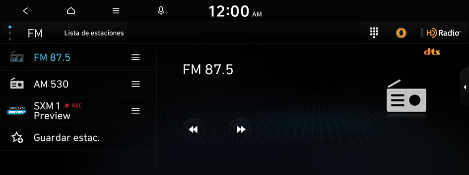 En la pantalla Radio, presione el botón Modo de radio varias veces.