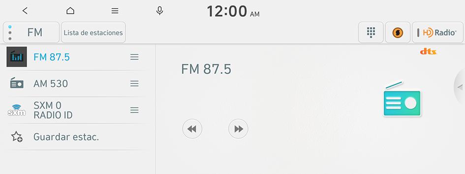 El modo de radio se cambia siguiendo el orden de FM ▶ AM ▶ SXM.