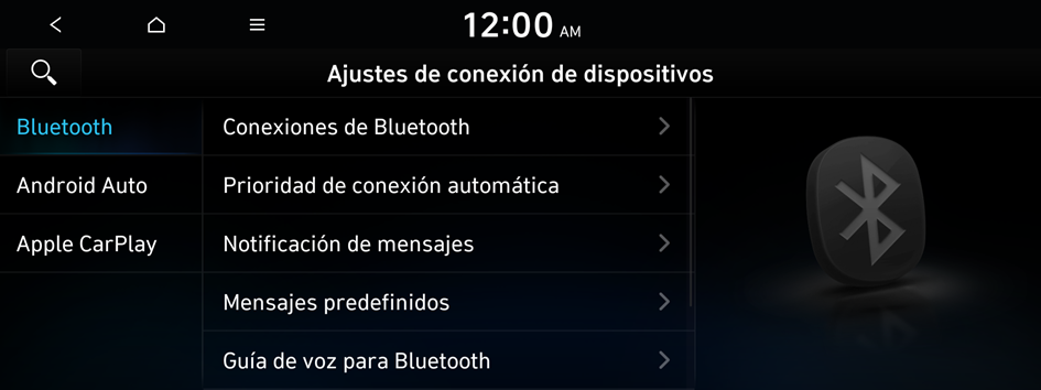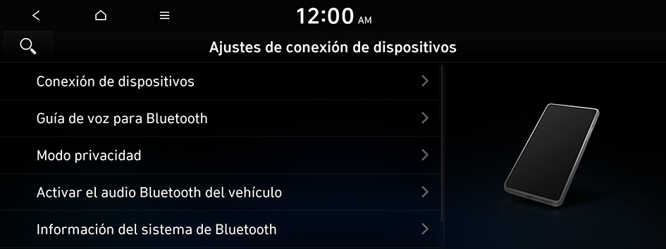 e ingrese una palabra clave para buscar un elemento de ajuste. También puede buscar un elemento de ajuste por voz.Puede registrar o eliminar un dispositivo Bluetooth del sistema y conectar o desconectar un dispositivo registrado.