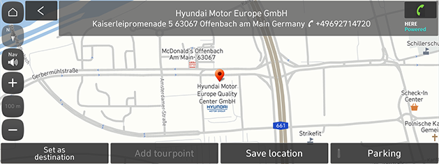 Destination: Uneko helmugatik gertu dauden Hyundai zerbitzuak bilatzen ditu. Helmuga ezarrita dagoenean soilik dago eskuragarri.