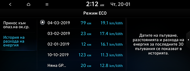 Натиснете EV > Режим ECO > История на разхода на енергия.
