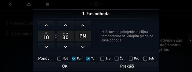 Когато натиснете OK, тази функция задава желаното време за заминаване.