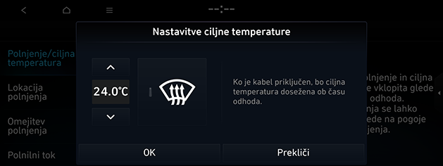 Натиснете EV > Управление на зарежд. > Зареждане и климатроник > Целева температура.