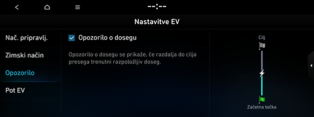 Натиснете EV > Настройки на електромобила > Предупрежд..