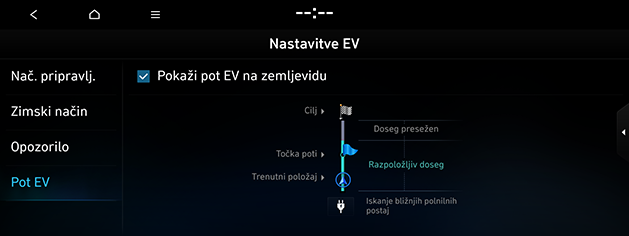 Натиснете EV > Настройки на електромобила > Маршрут на електромобила.