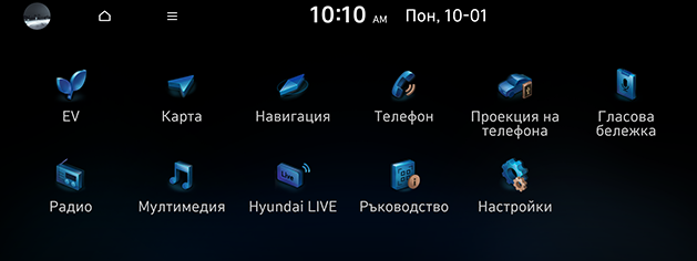 Екран от менюто за режим EV (Електрическо превозно средство)