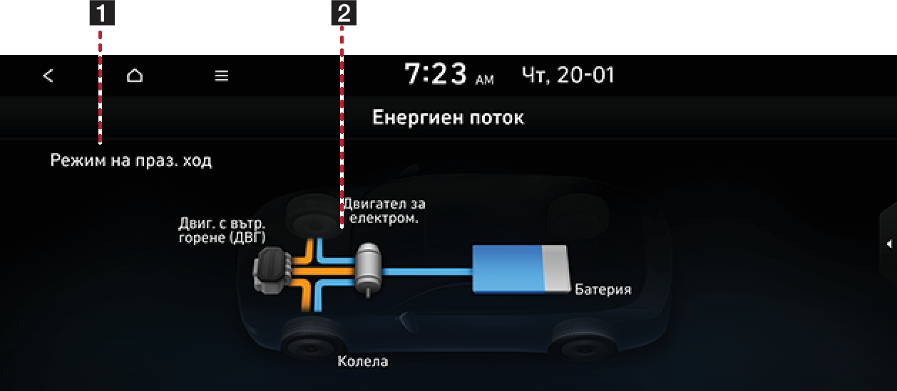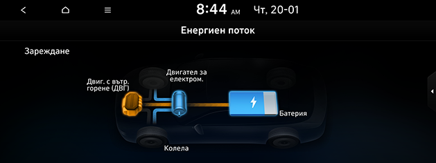 Менюто Хибриден се състои от два раздела: Ср. разх. гориво, Енергиен поток.