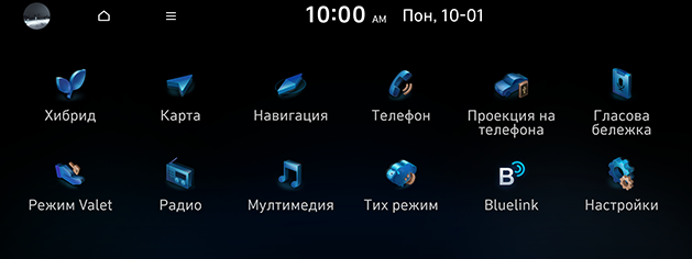Екран на менюто за Хибрид режим