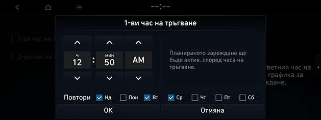 Когато натиснете OK, тази функция задава желаното време за заминаване.