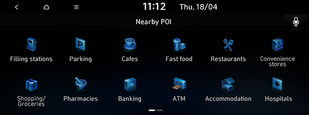 Destination: Cerca PDI prop de la destinació actual. Només està disponible quan està definida la destinació.
