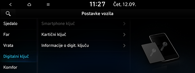 Pritisnite SETUP > Vozilo > Digitalni ključ.