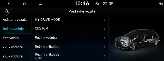 Možete mijenjati postavke načina vožnje. Prikazuje se kao Režim vožnje/terena na nekim vozilima. Neke funkcije i slike mogu se razlikovati od onih na stvarnom proizvodu, ovisno o modelu, opciji i zemlji.
