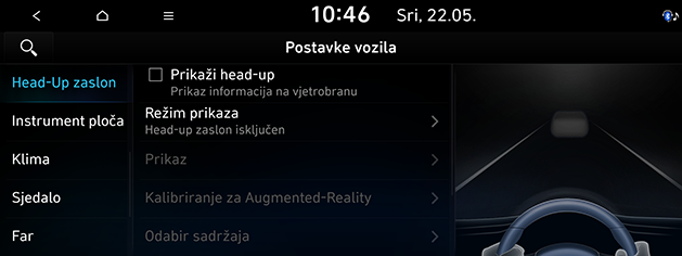 Prikaži head-up: Prikazuje informacije u visini glave na vjetrobranu.