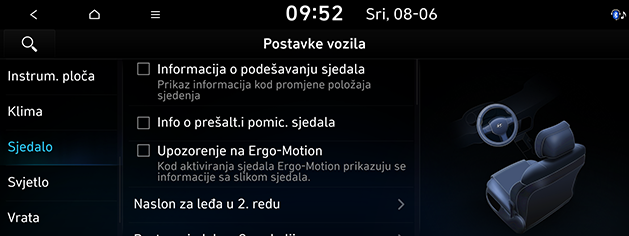 Pritisnite SETUP > Vozilo > Sjedalo.