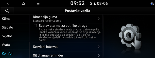 Blokada klima uređaja otraga: Kad je ova stavka označena, postavke za upravljanje klimom sa stražnje strane su zaključane.