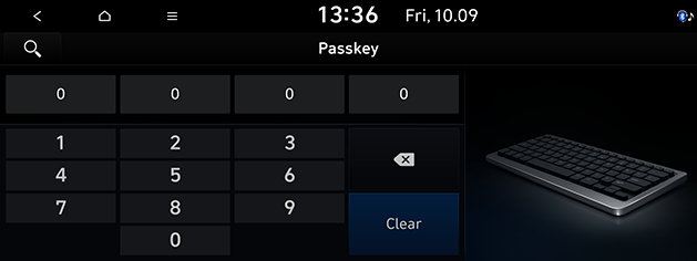 Enter the passkey using the keypad. The changed passkey is automatically saved.