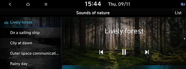 ] > Media sources > Sounds of nature or toggle through MODE button on the steering wheel. -