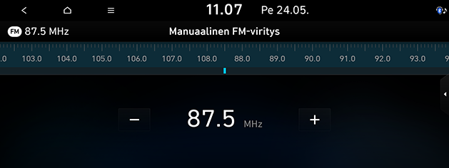 ] > Manuaalinen AM-viritys tai Manuaalinen FM-viritys radionäytöltä.