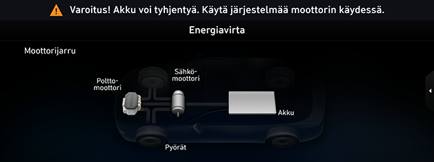 Näyttää hybridiajoneuvon ajotilan.