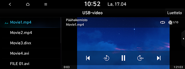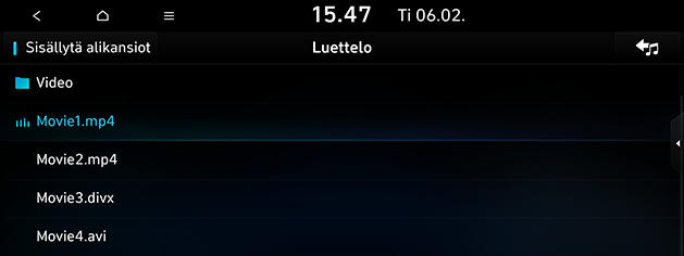 Voit toistaa halutun tiedoston etsimällä USB-tiedostolistaa