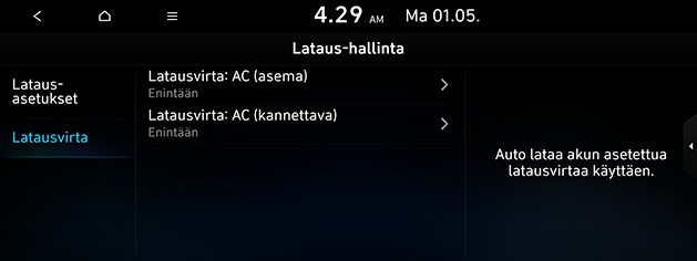 Paina PHEV > Lataus-hallinta > Latausvirta.